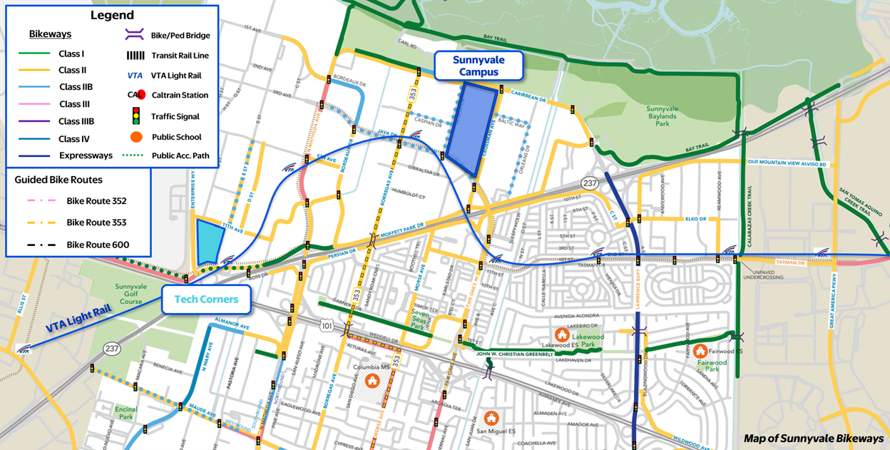 - Caltrain (Last-mile shuttle offered to both Sunnyvale sites)